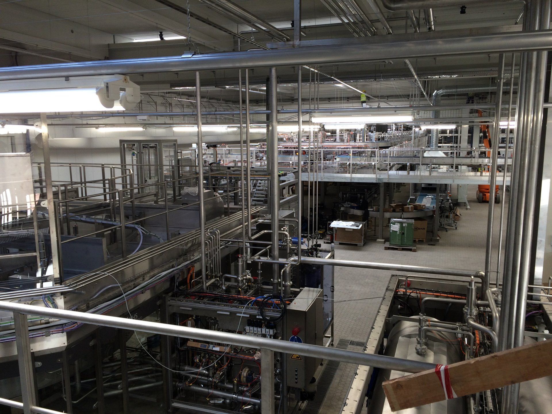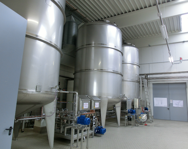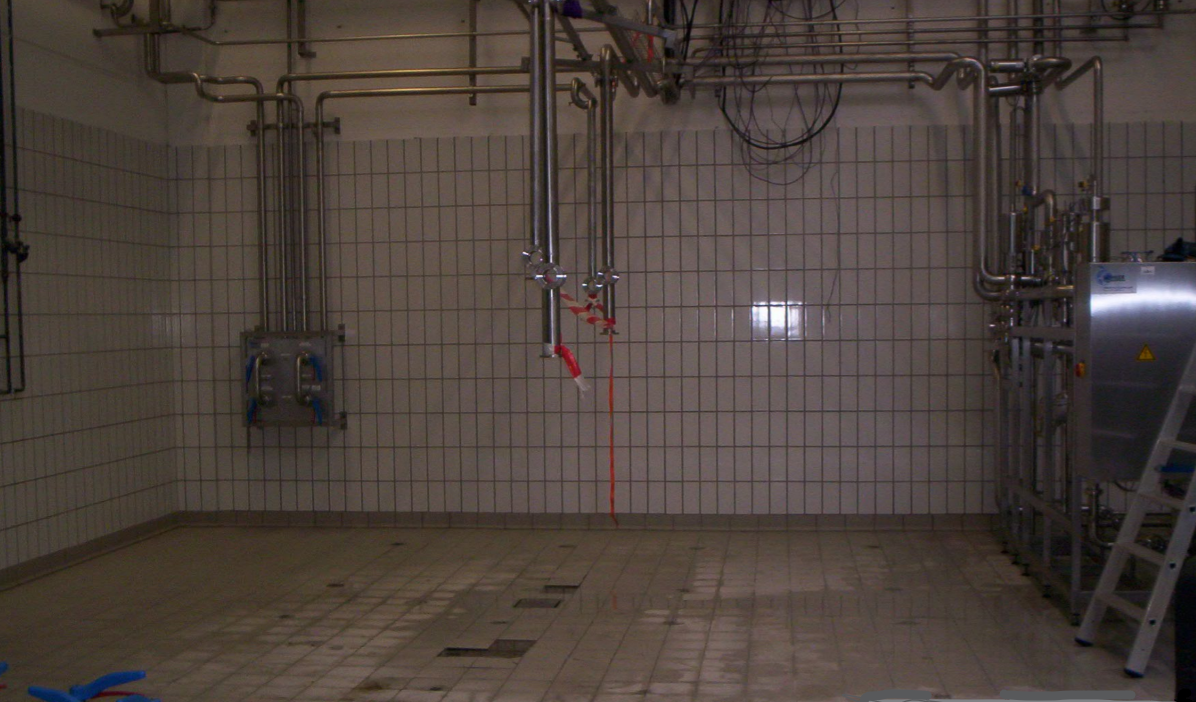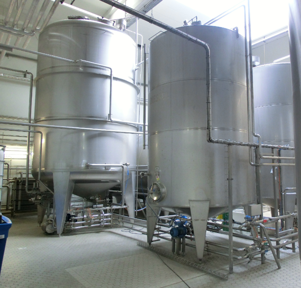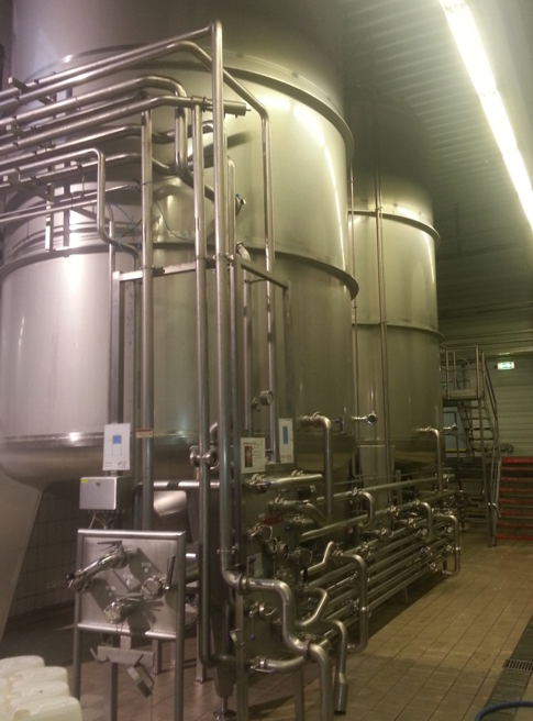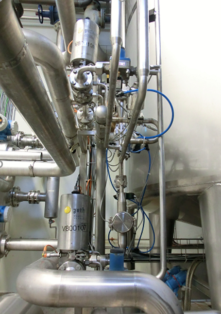 Ventilknoten mit Molchstationen für Sirup zum Mixer sowie Zuckerlösung zwischen zwei Sirupräumen