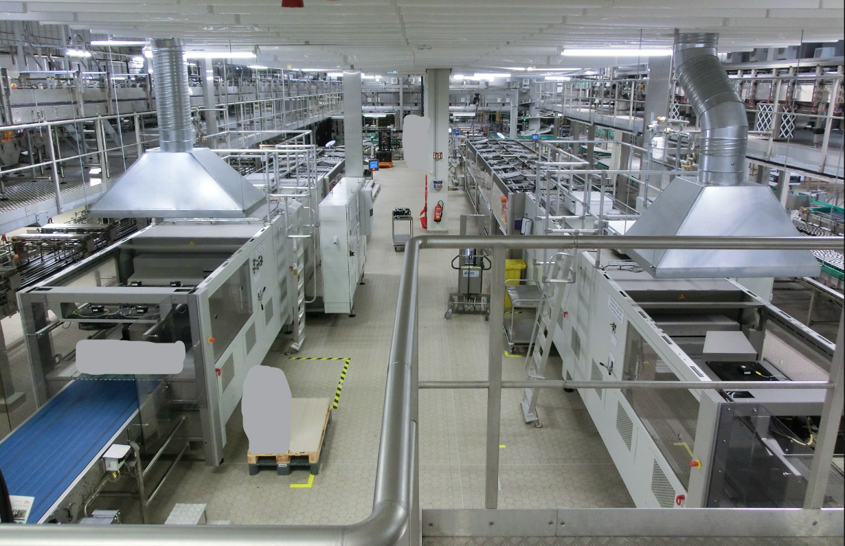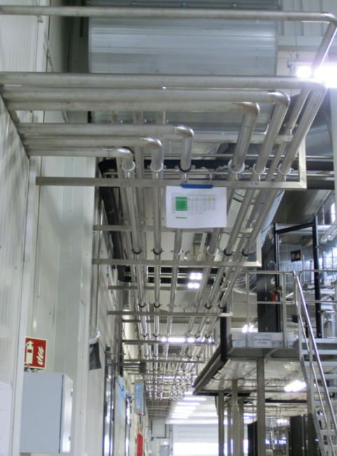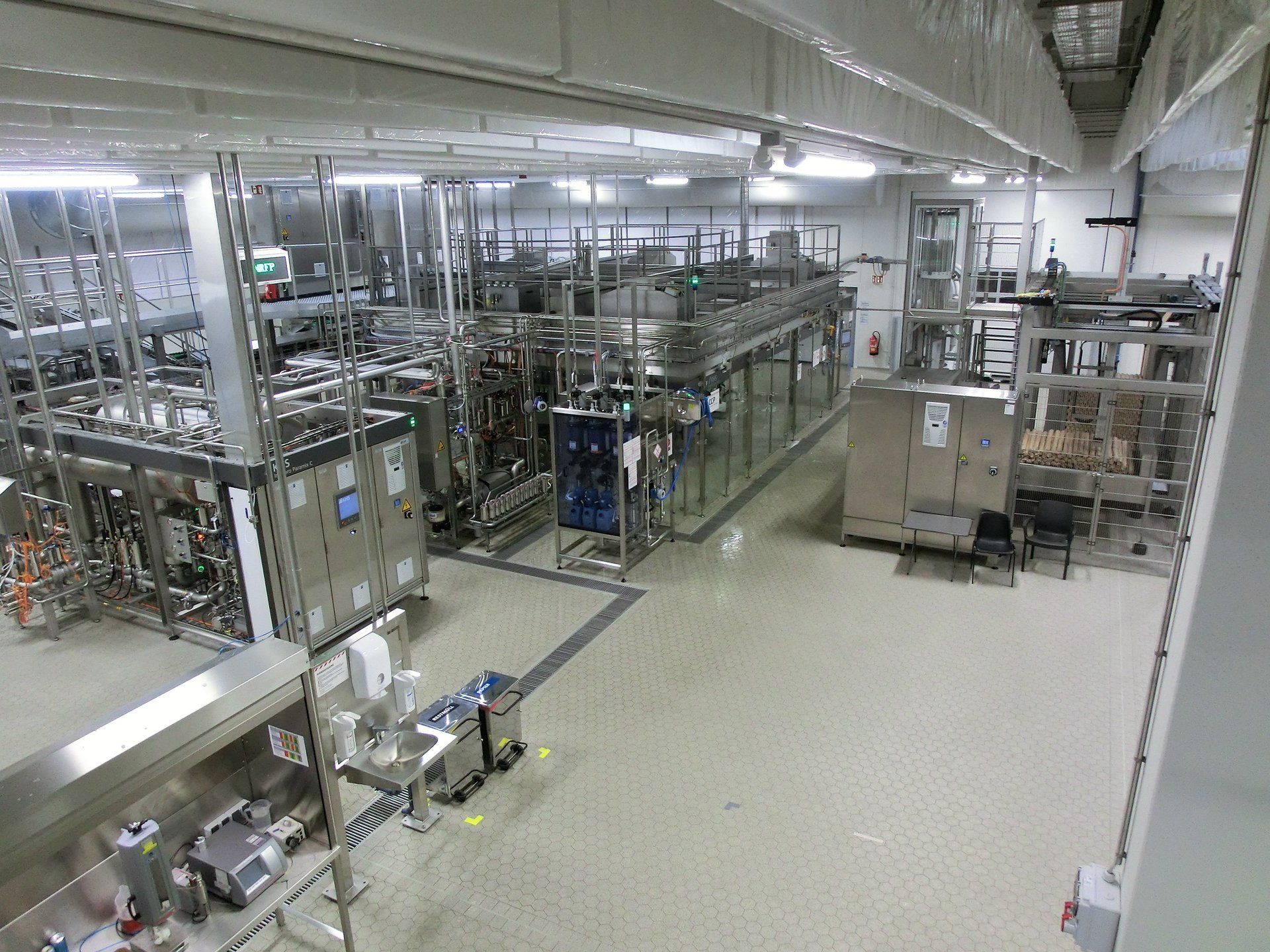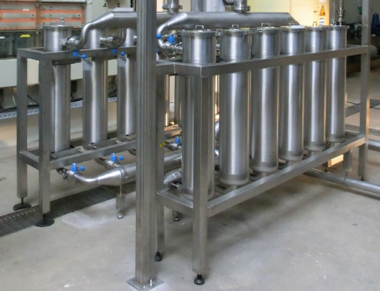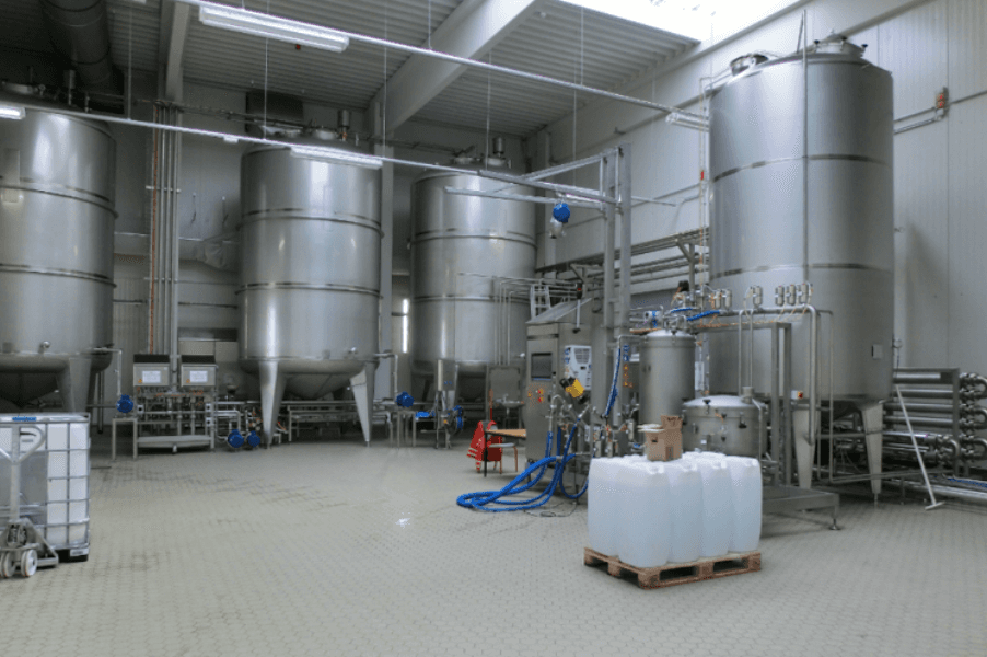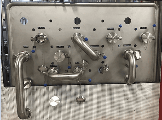 Ventilknoten mit Molchstationen für Sirup zum Mixer sowie Zuckerlösung zwischen zwei Sirupräumen
