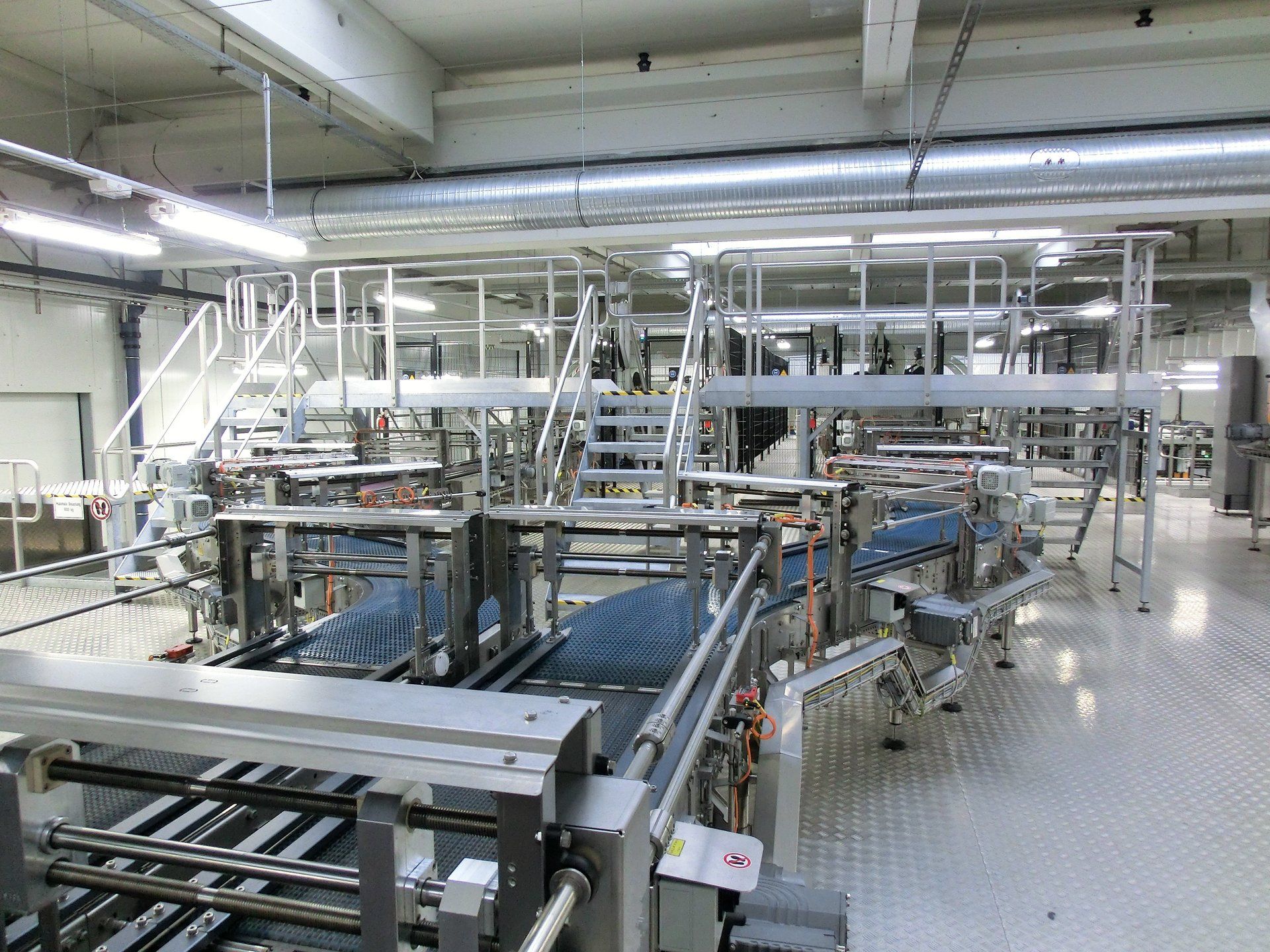 Beladerzulauf auf zweiter Ebene. Verarbeitung von zwei verschiedenen Pallettenformate gleichzeitig möglich
